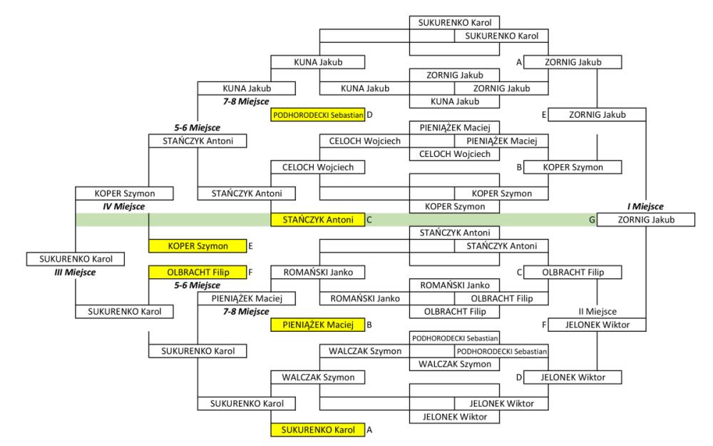 W kategorii chłopców nie brakowało wspaniałych występów, Jakub Zornig wywalczył pierwsze miejsce, drugie miejsce zdobył Wiktor Jelonek, a na trzecim miejscu uplasował się Karol Sukurenko.