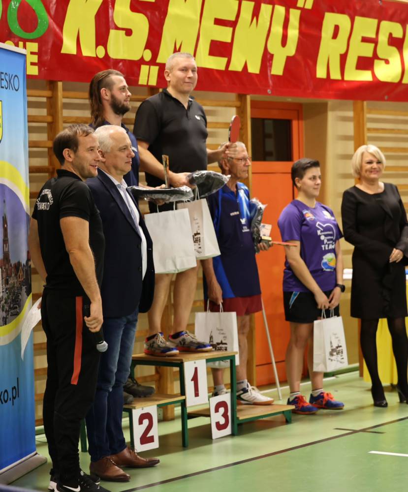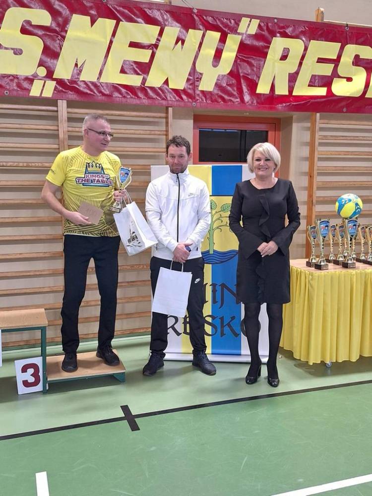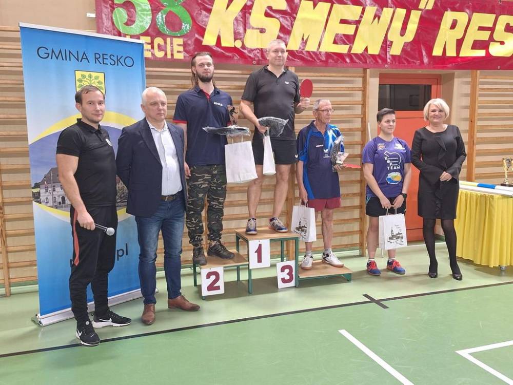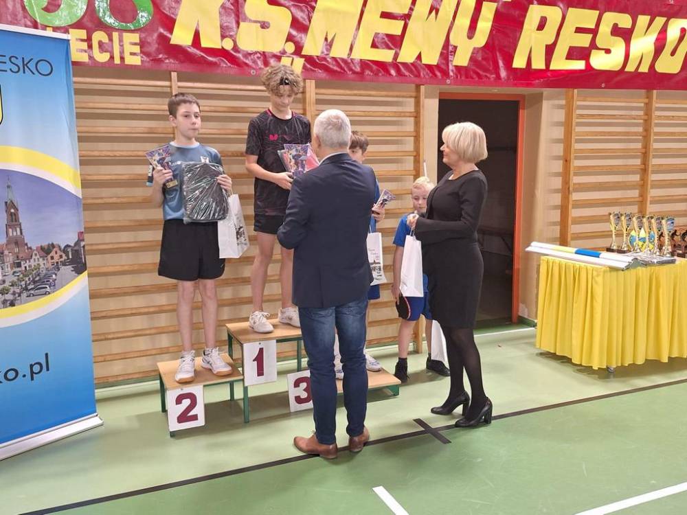 W sobotę 25 listopada na hali sportowej w Resku rozegrany został Turniej Tenisa Stołowego z okazji 58-lecia powstania LKS Mewa Resko. Pomysłodawcą i organizatorem turnieju był trener Mewy Resko Dariusz Znajewski. W imieniu organizatorów turniej otworzyli: Starosta Powiatu Łobeskiego p. Renata Kulik, prezes LZS Tomasz Paciejewski oraz p. Jacek Sękowski – działacz sportowy i wielki popularyzator tej dyscypliny sportu. Do rozgrywek przystąpiło aż 85 zawodników z województwa zachodniopomorskiego. Zawodnicy wystąpili w jednej z 4 kategorii: do 45 lat, 45+, amatorzy oraz szkoły podstawowe. Zacięte walki o każdą piłkę toczyły się równocześnie aż na 15 stołach. Rozegrano dziesiątki emocjonujących spotkań, które stały na naprawdę wysokim poziomie. W czasie turnieju dokonano również podsumowania III edycji Reskiej Ligi Tenisa Stołowego. Były to rozgrywki systematyczne, a duże zainteresowanie dzieci i młodzieży potwierdza przekonanie, że tego typu forma rozgrywek podoba się młodzieży. Najlepsi zawodnicy otrzymali puchary oraz nagrody rzeczowe i finansowe, które wręczyli: Starosta Powiatu Łobeskiego p. Renata Kulik oraz Burmistrz Reska p. Arkadiusz Czerwiński.